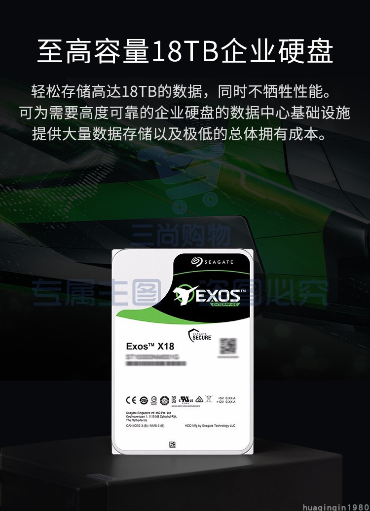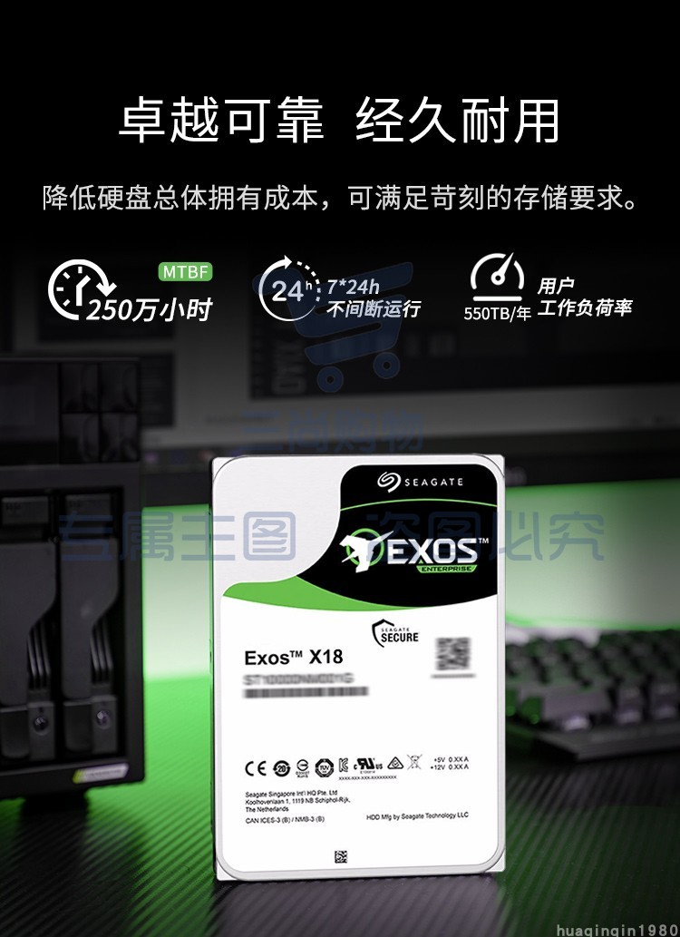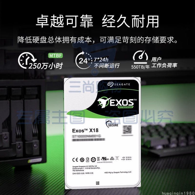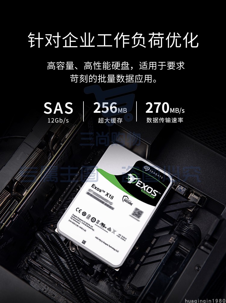 希捷(Seagate)ST16000NM004J 企业级硬盘 16TB 256MB 7200RPM SAS接口 希捷银河Exos X18系列 氦气