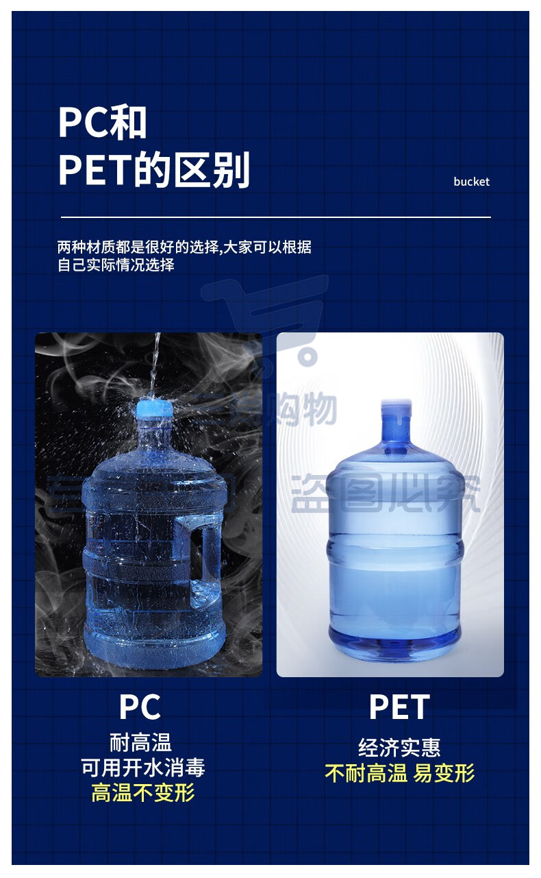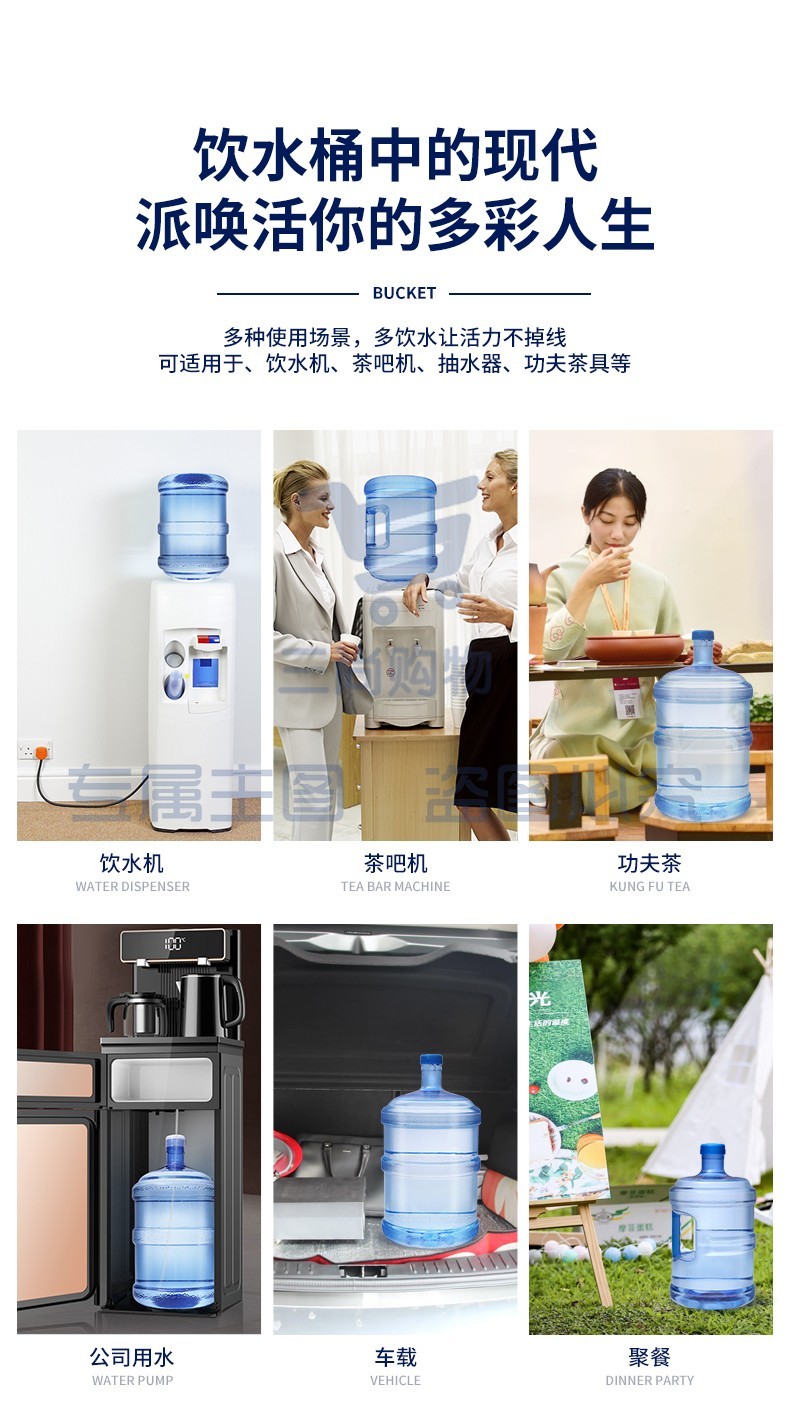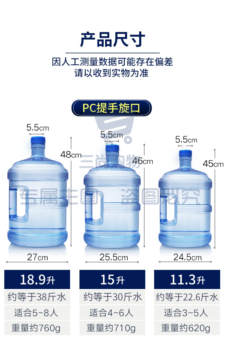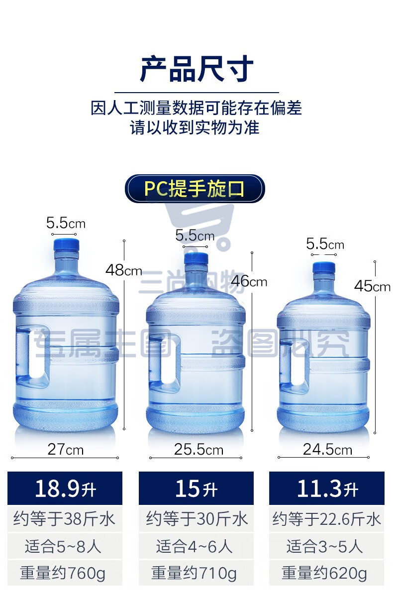 纯净水桶饮水机用大号桶装水桶 食品级售水机接水桶 加厚矿泉储水桶 18.9升PC材质(拧盖)