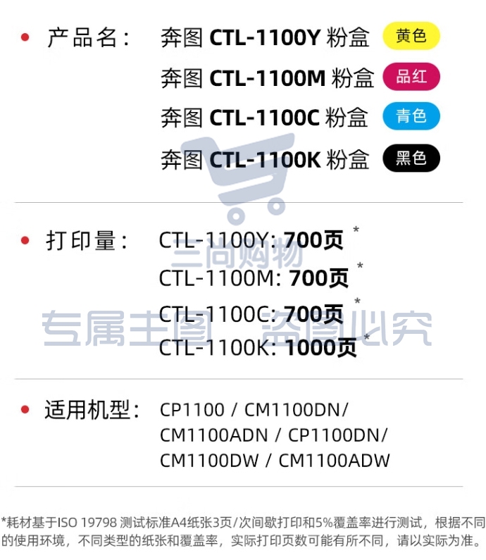 奔图(PANTUM) CTL-1100K/M/C/Y 4色套装 适用CP1100/CP1100DN/CM1100DN/DW/CM1100ADN/ADW