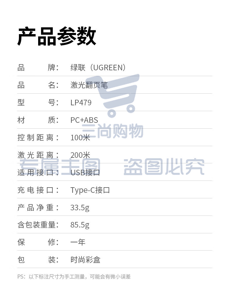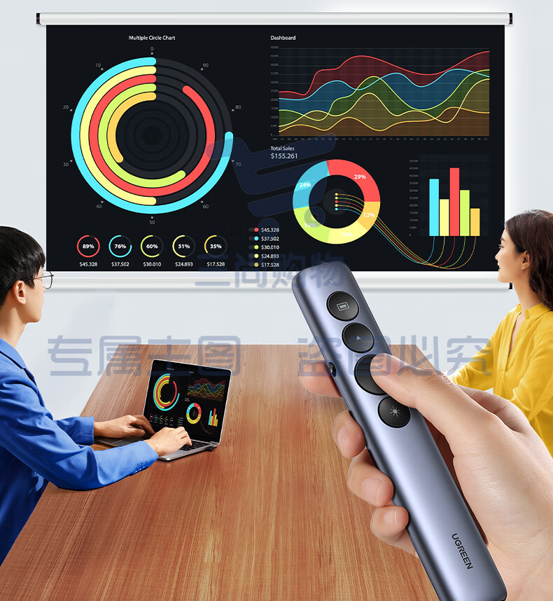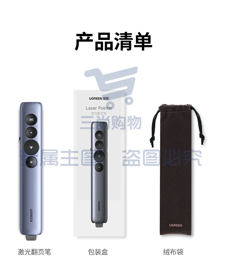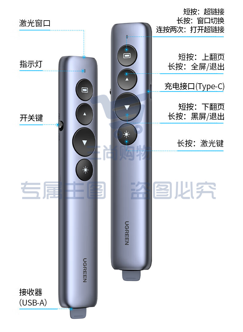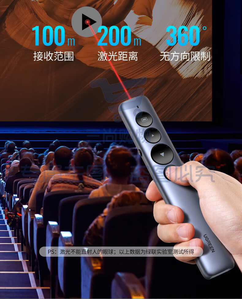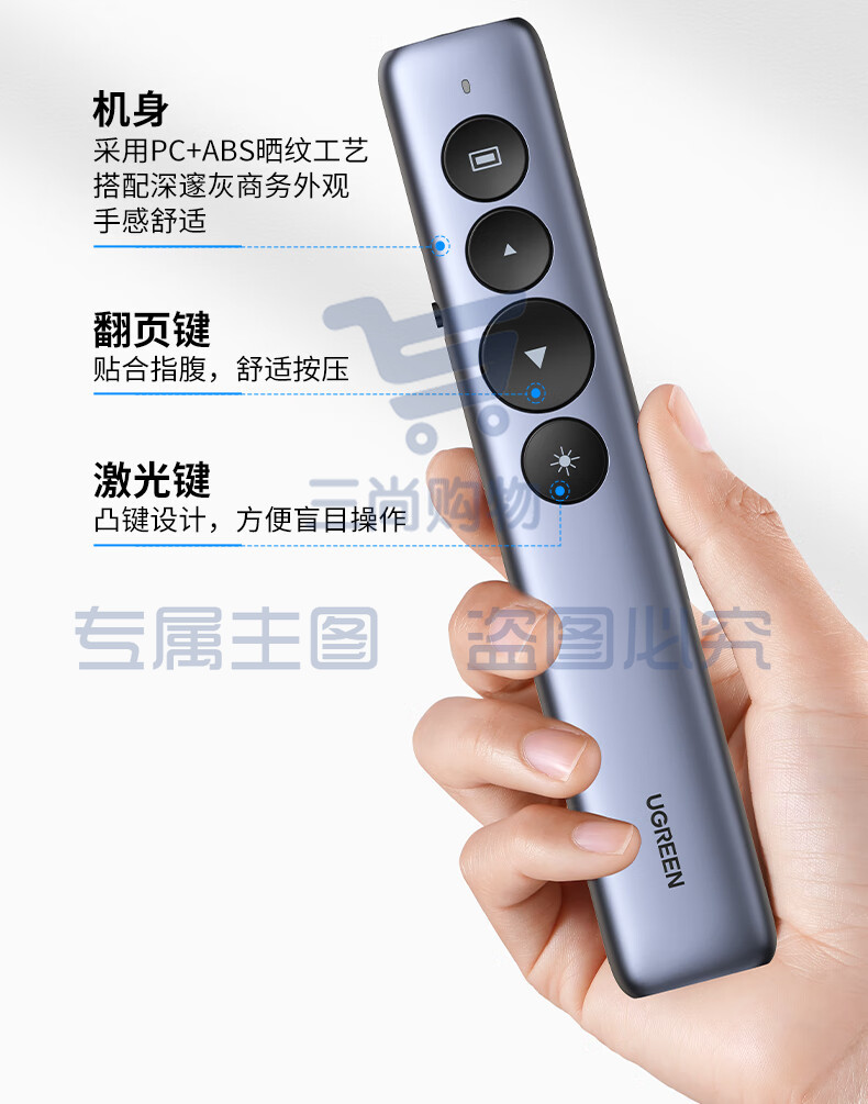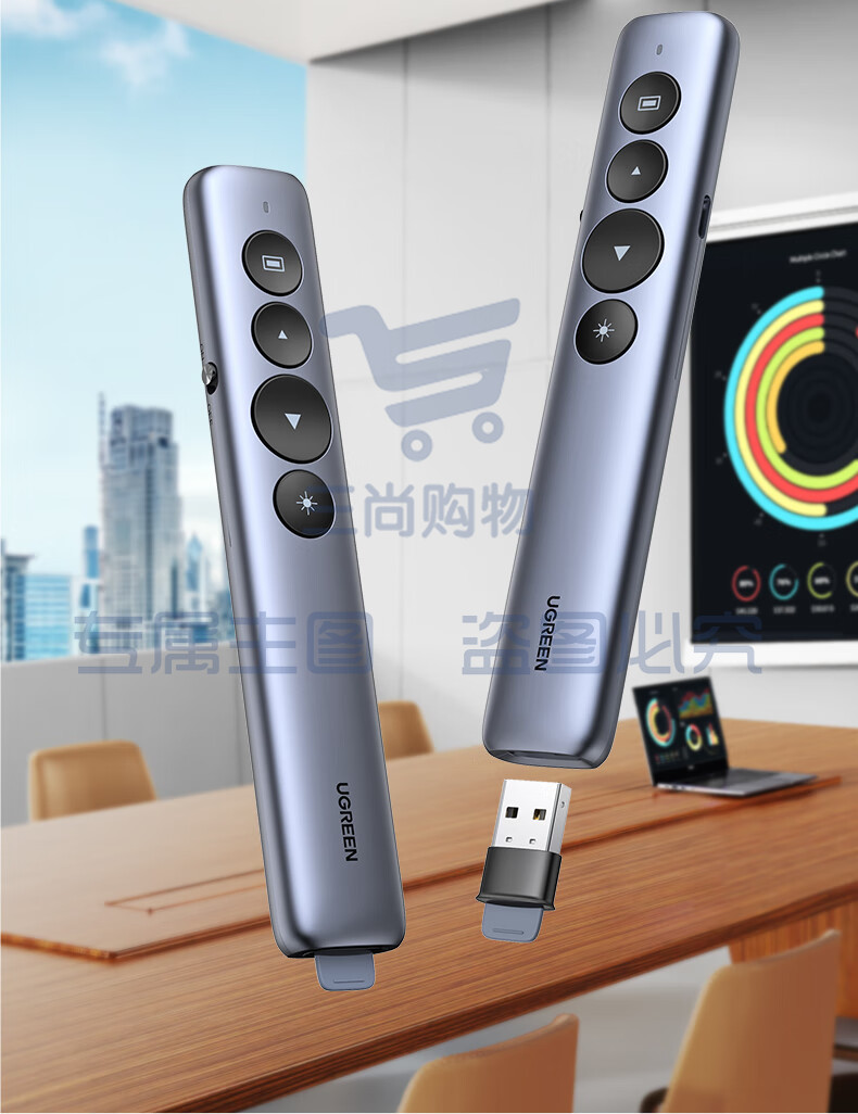 绿联 翻页笔 激光笔可充电 PPT投影笔教师教鞭电子演讲笔 多媒体幻灯片无线演示课件笔 15153