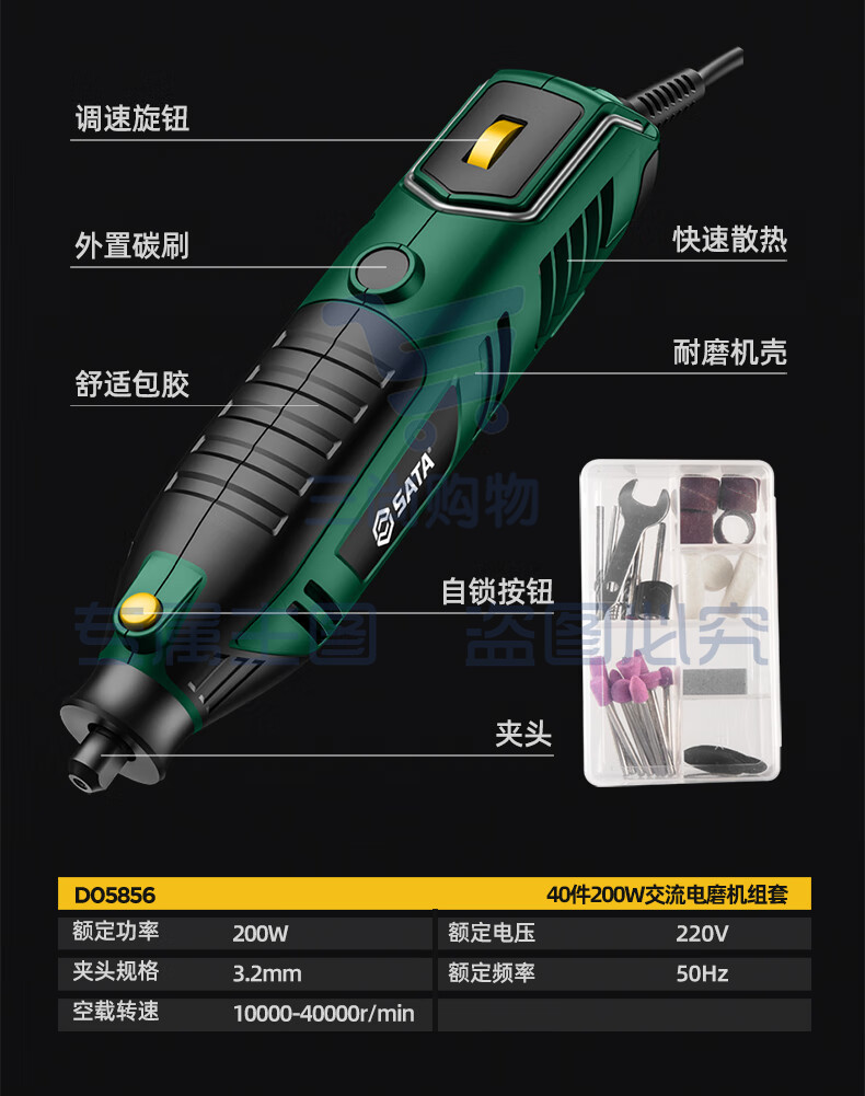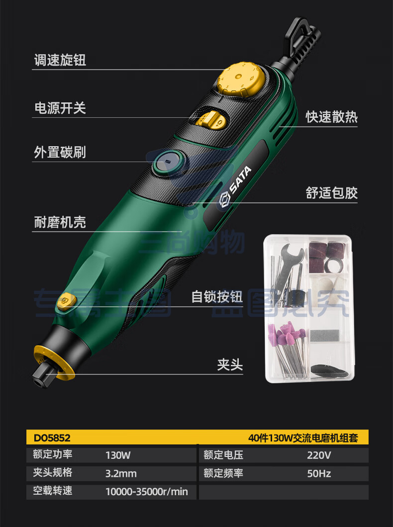 世达(SATA)大功率小型调速打磨机D05852 40件组套