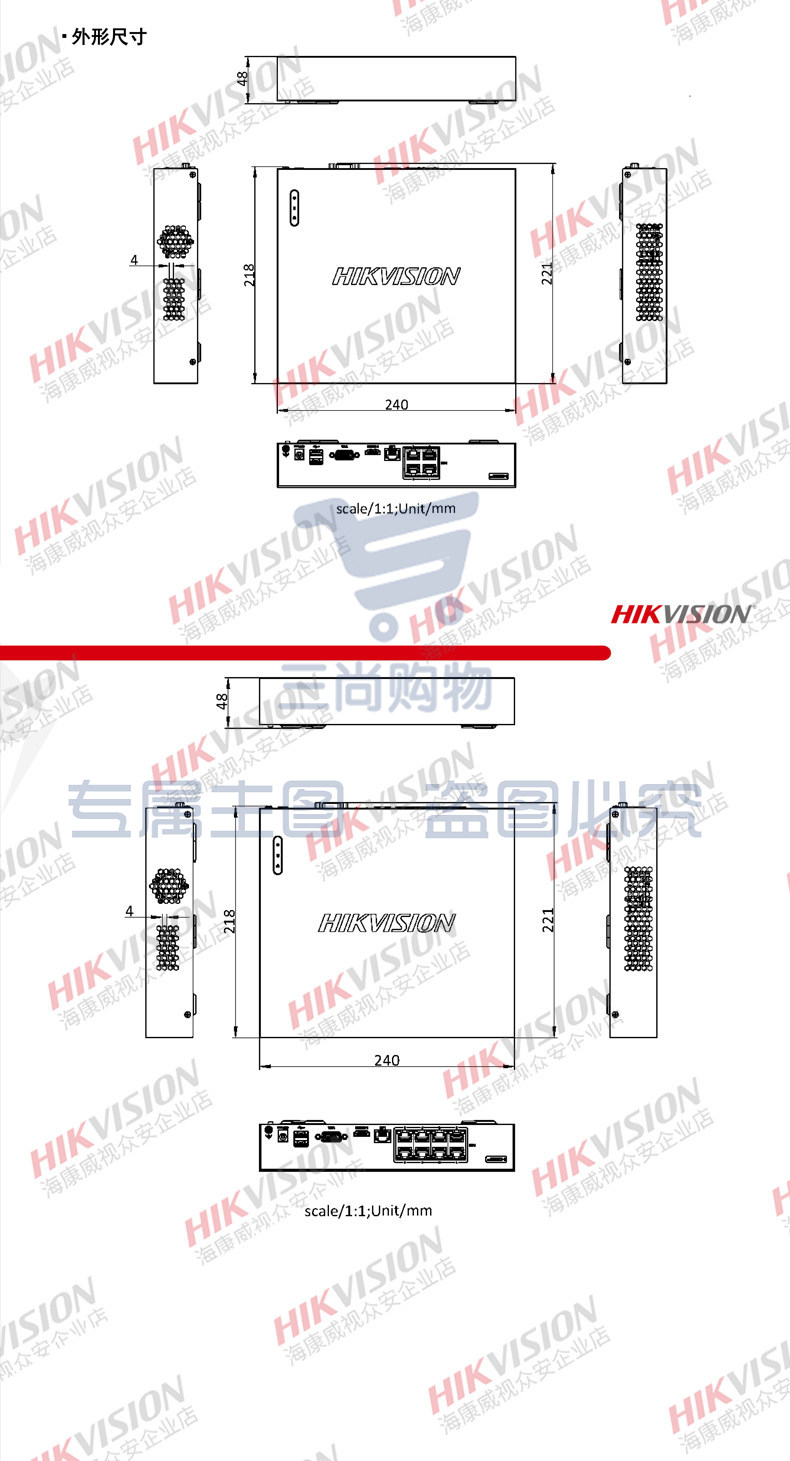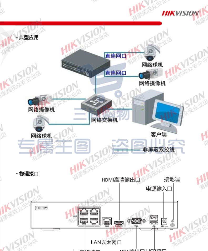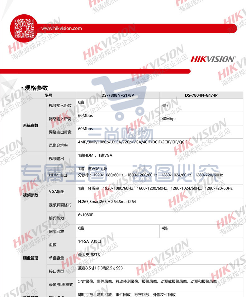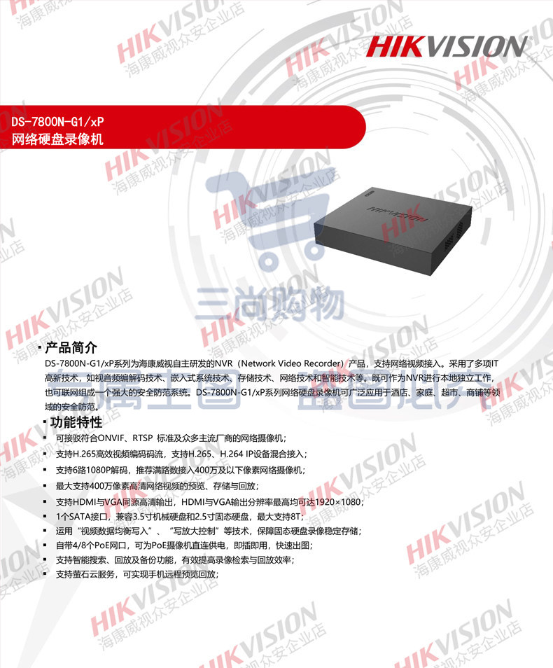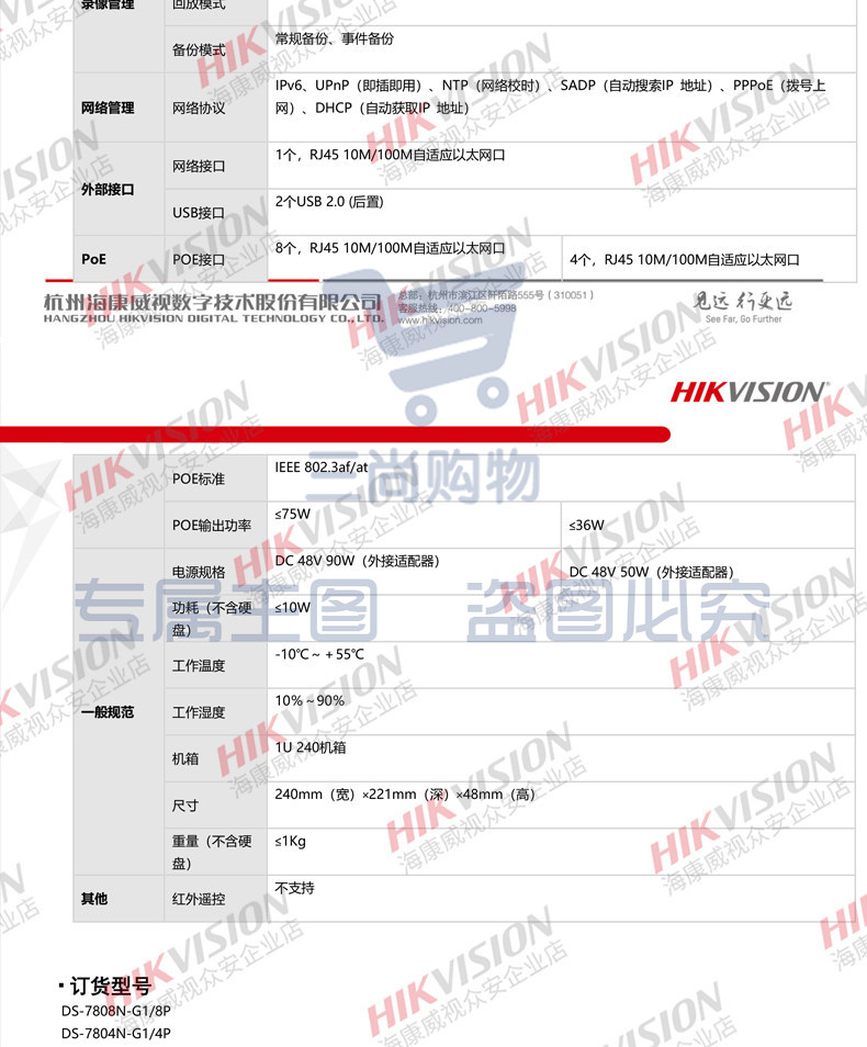 海康威视4路1盘POE网络远程NVR高清监控硬盘录像机DS-7804N-G1/4P