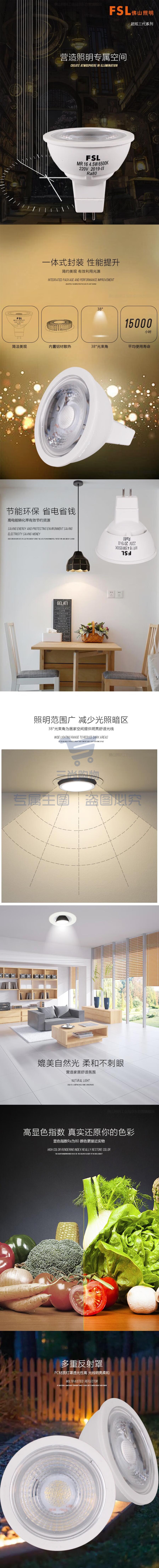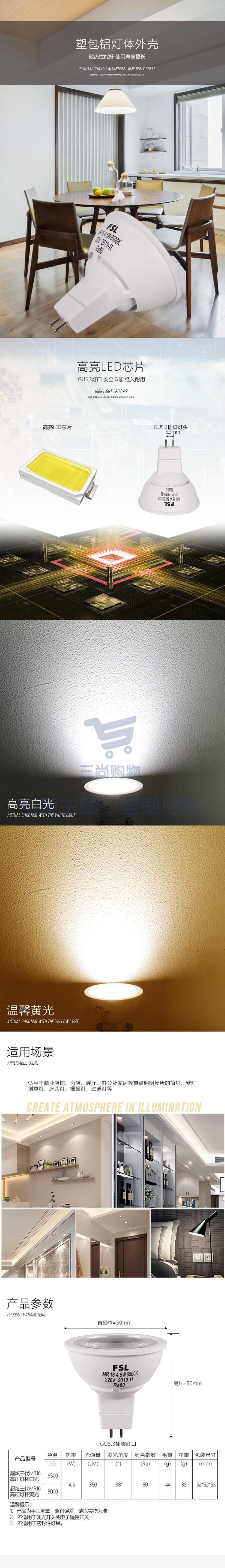 佛山照明 LED灯杯 MR16 5.5W 射灯替换光源MR16低压12V插脚泡直径5cm黄光
