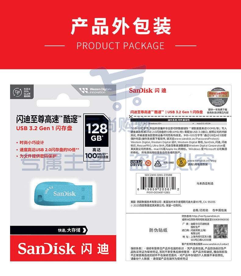 闪迪CZ410优盘64g高速USB3.2