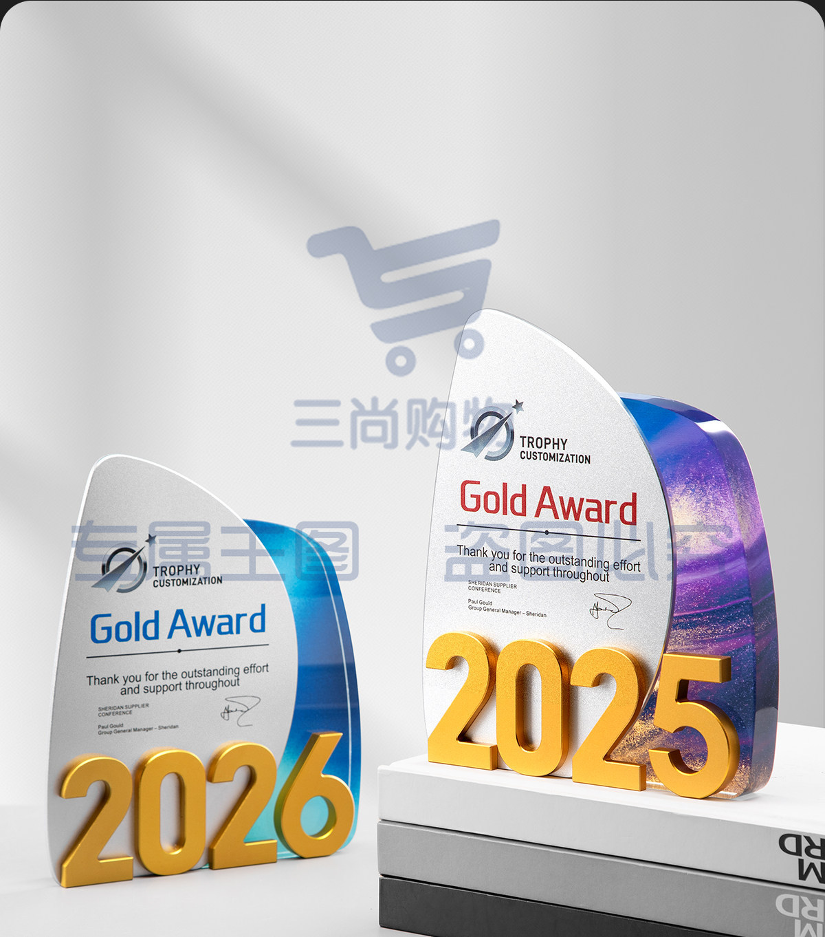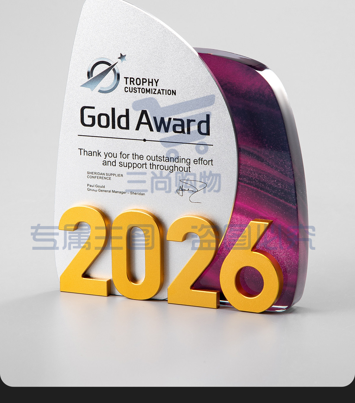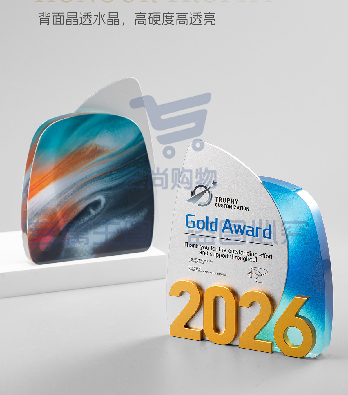 新款创意高档大气水晶奖杯定制定做优秀员工周年高端金属奖牌订制