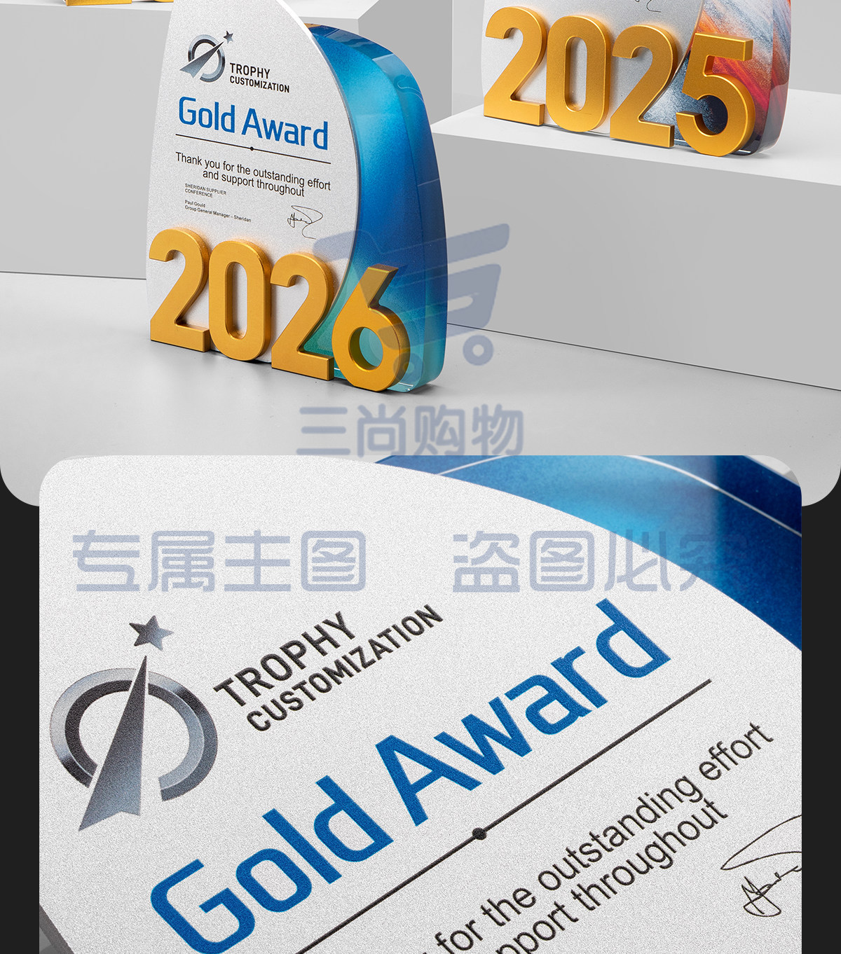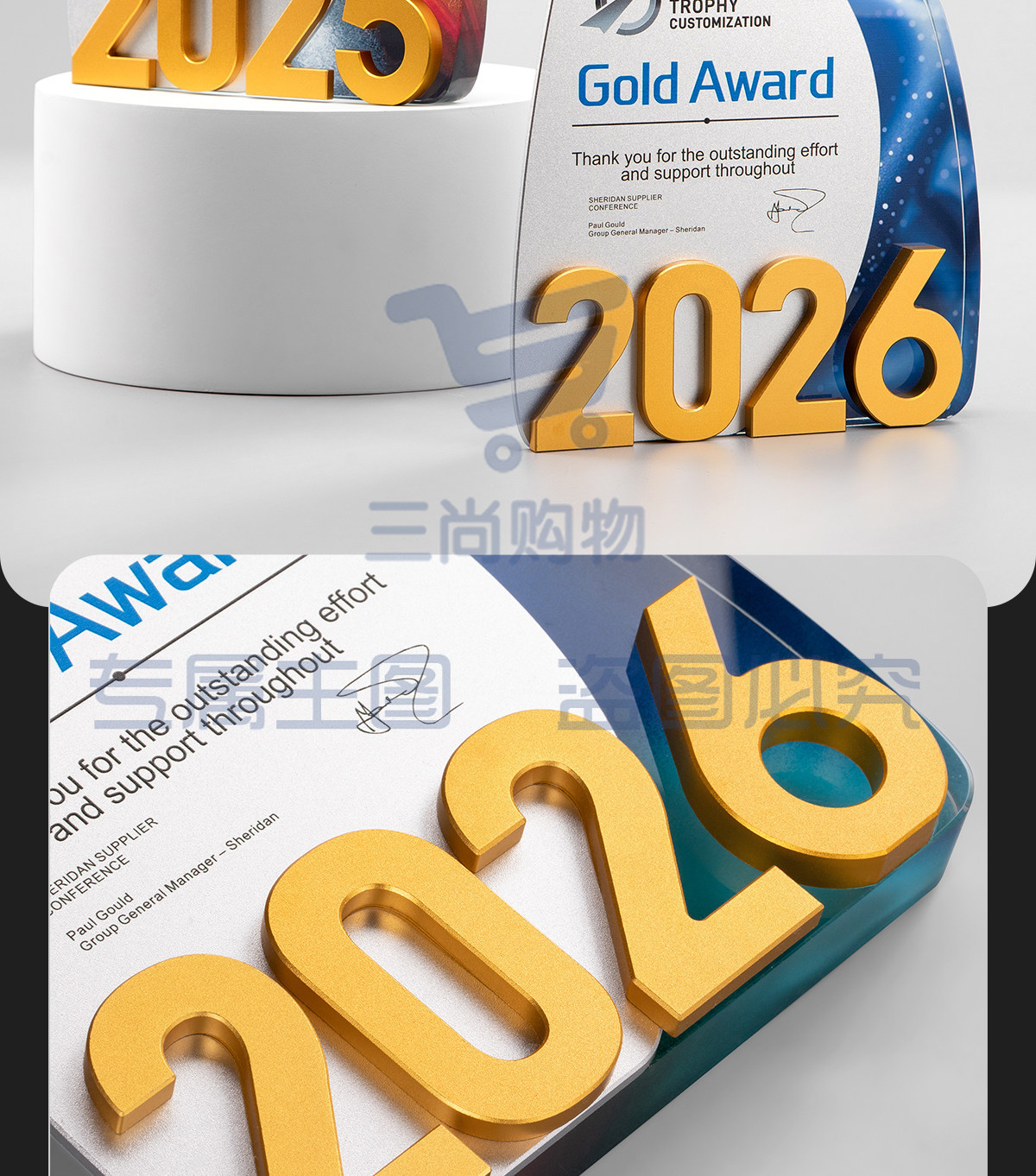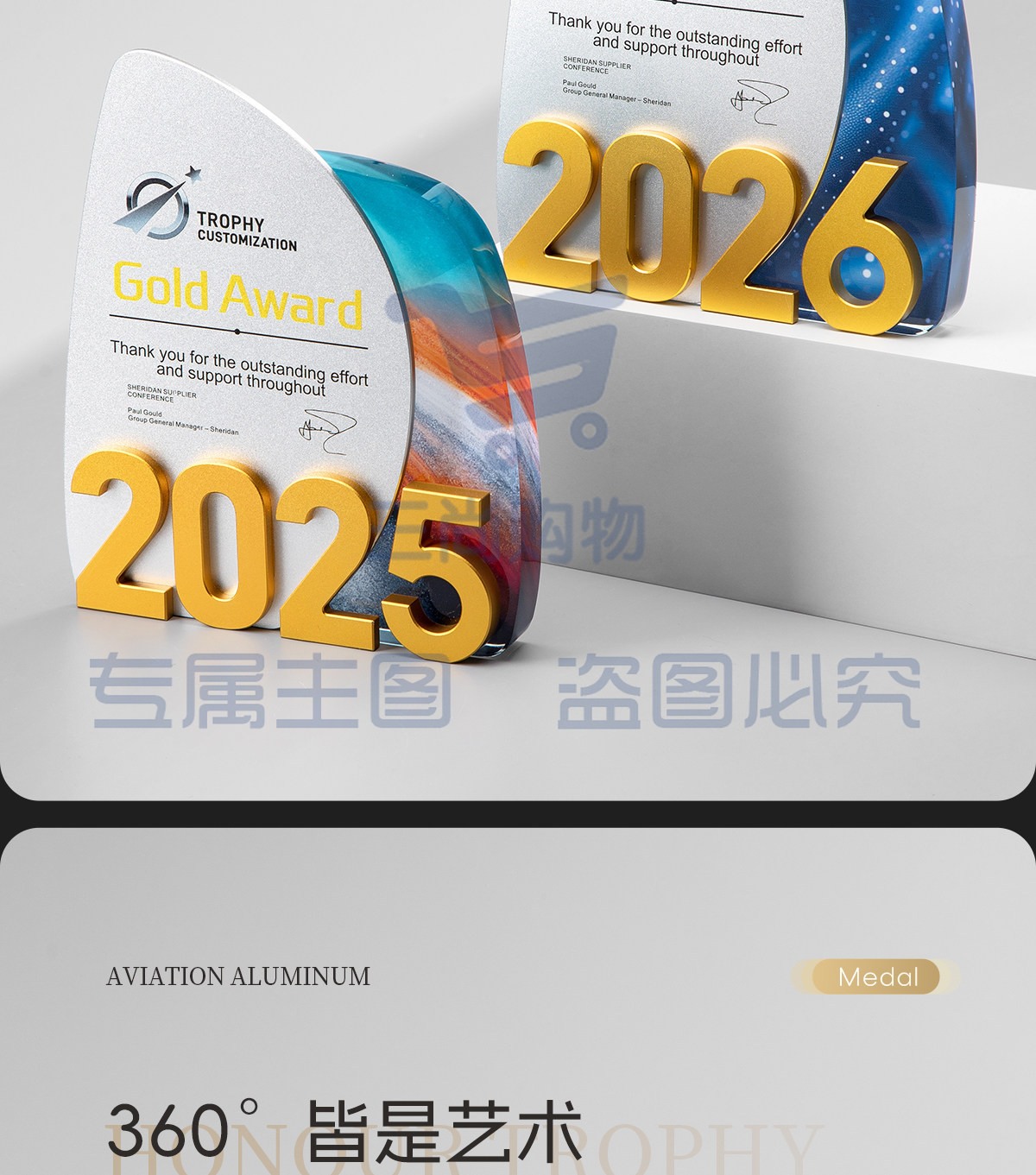 新款创意高档大气水晶奖杯定制定做优秀员工周年高端金属奖牌订制