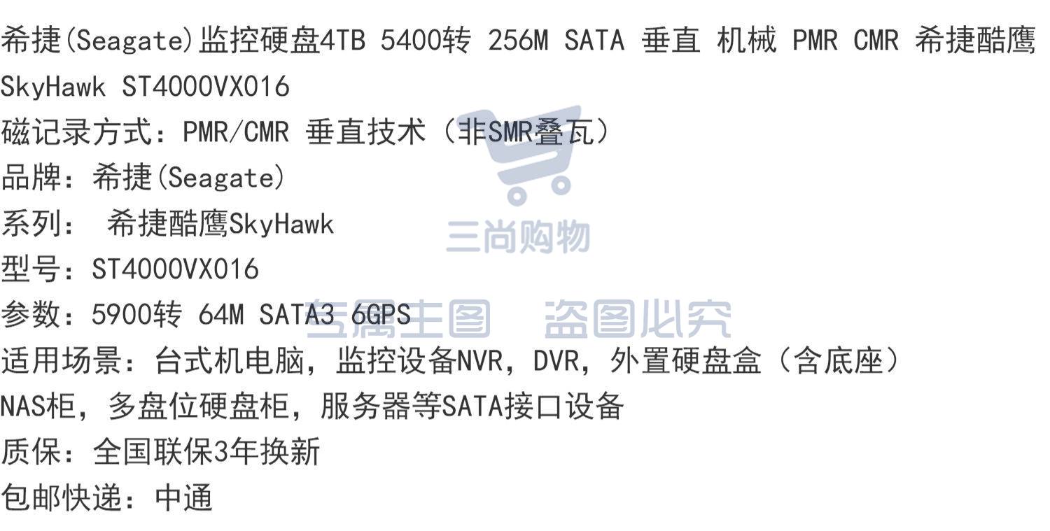 希捷ST4000VX015国行彩盒 酷鹰4TB桌上型电脑械监控硬盘