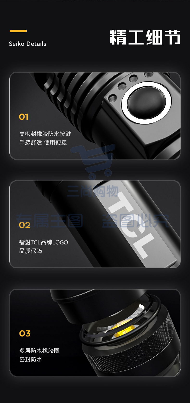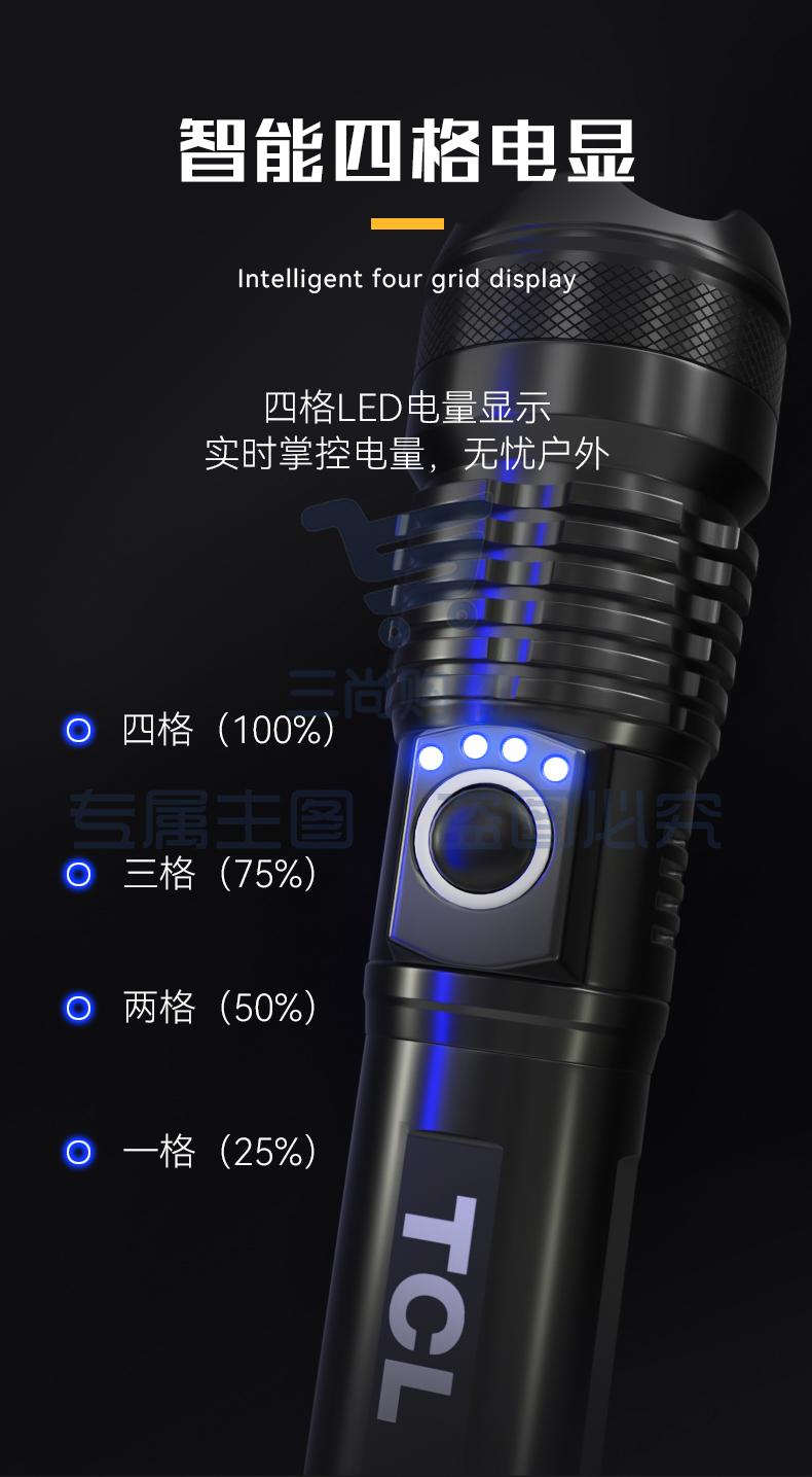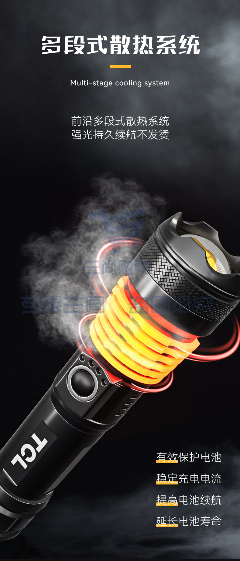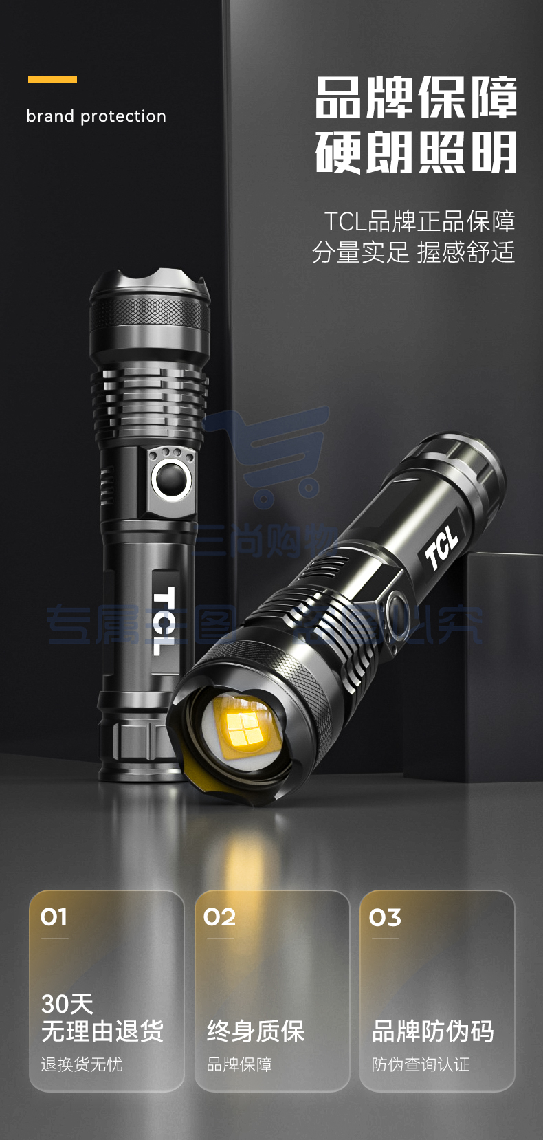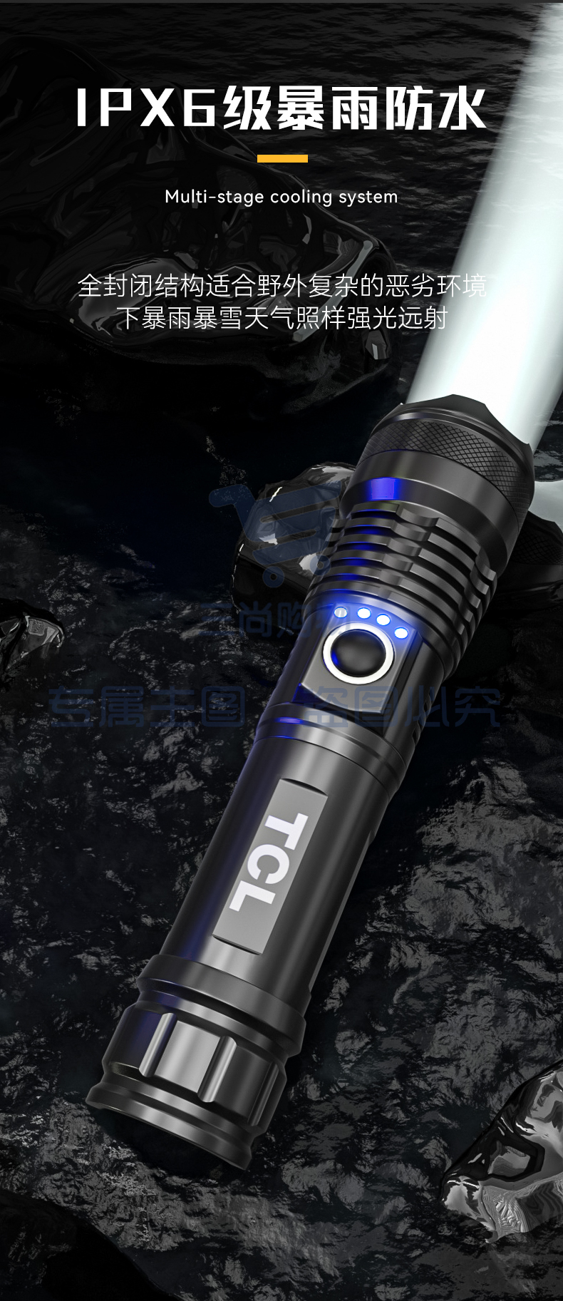 TCL手电筒强光变焦远射充电便携小型家用户外换电池巡逻夜骑应急灯