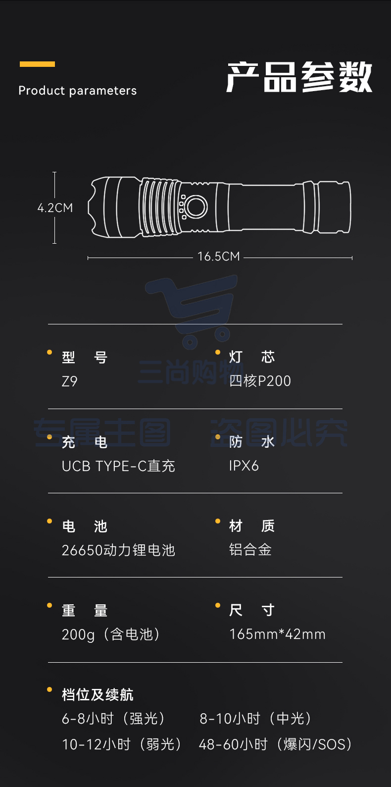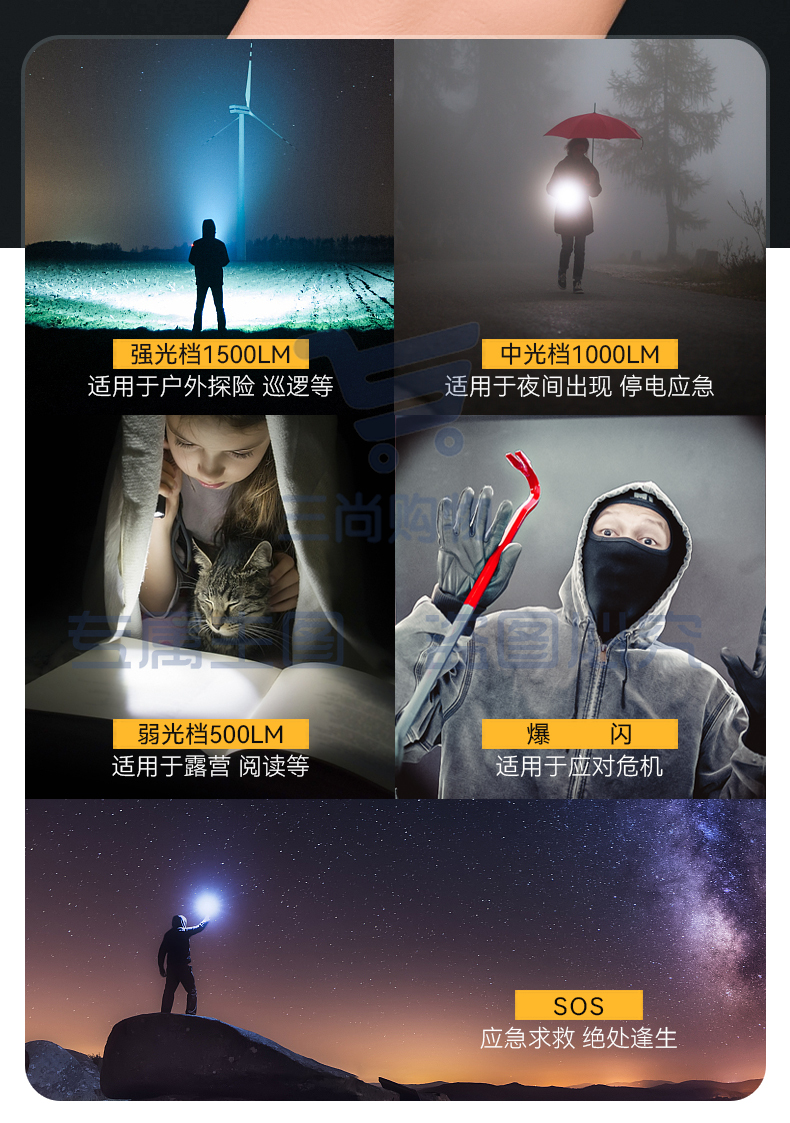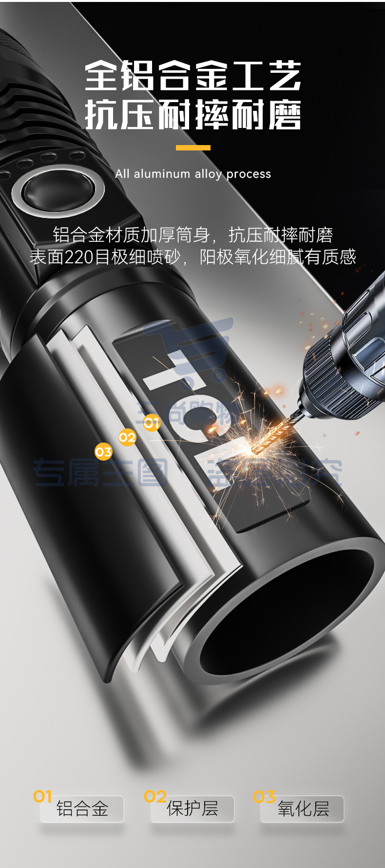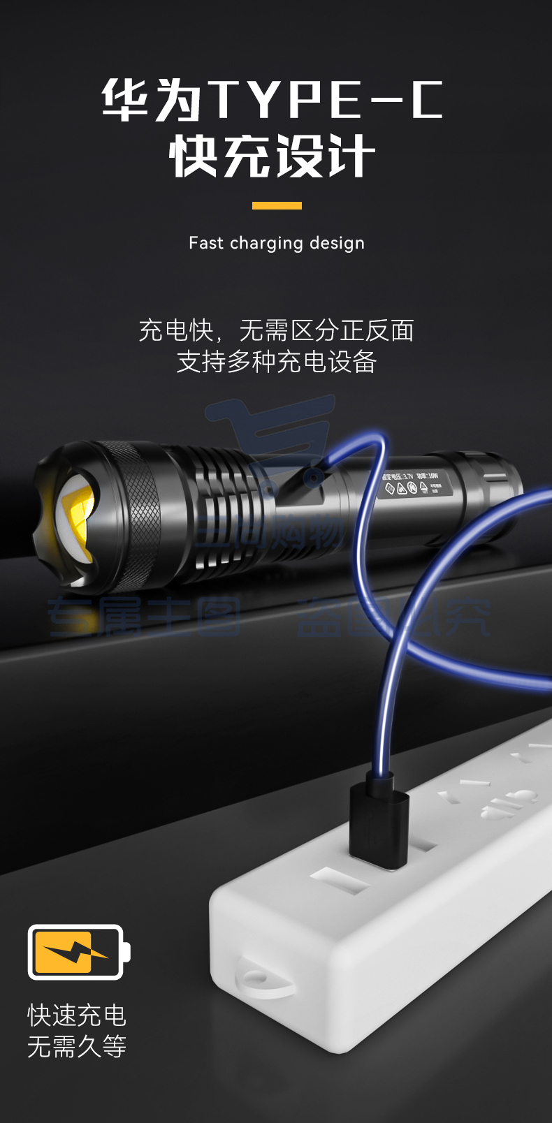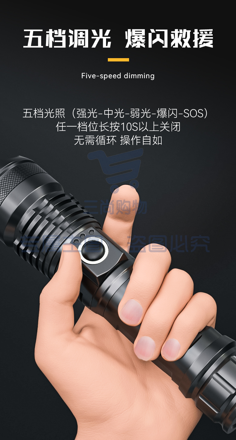 TCL手电筒强光变焦远射充电便携小型家用户外换电池巡逻夜骑应急灯