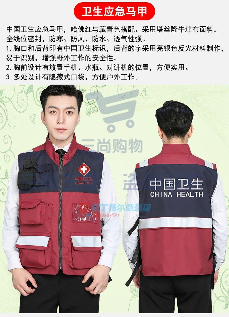 全套中国卫生应急服装 哈佛红--春秋马甲 男女同款