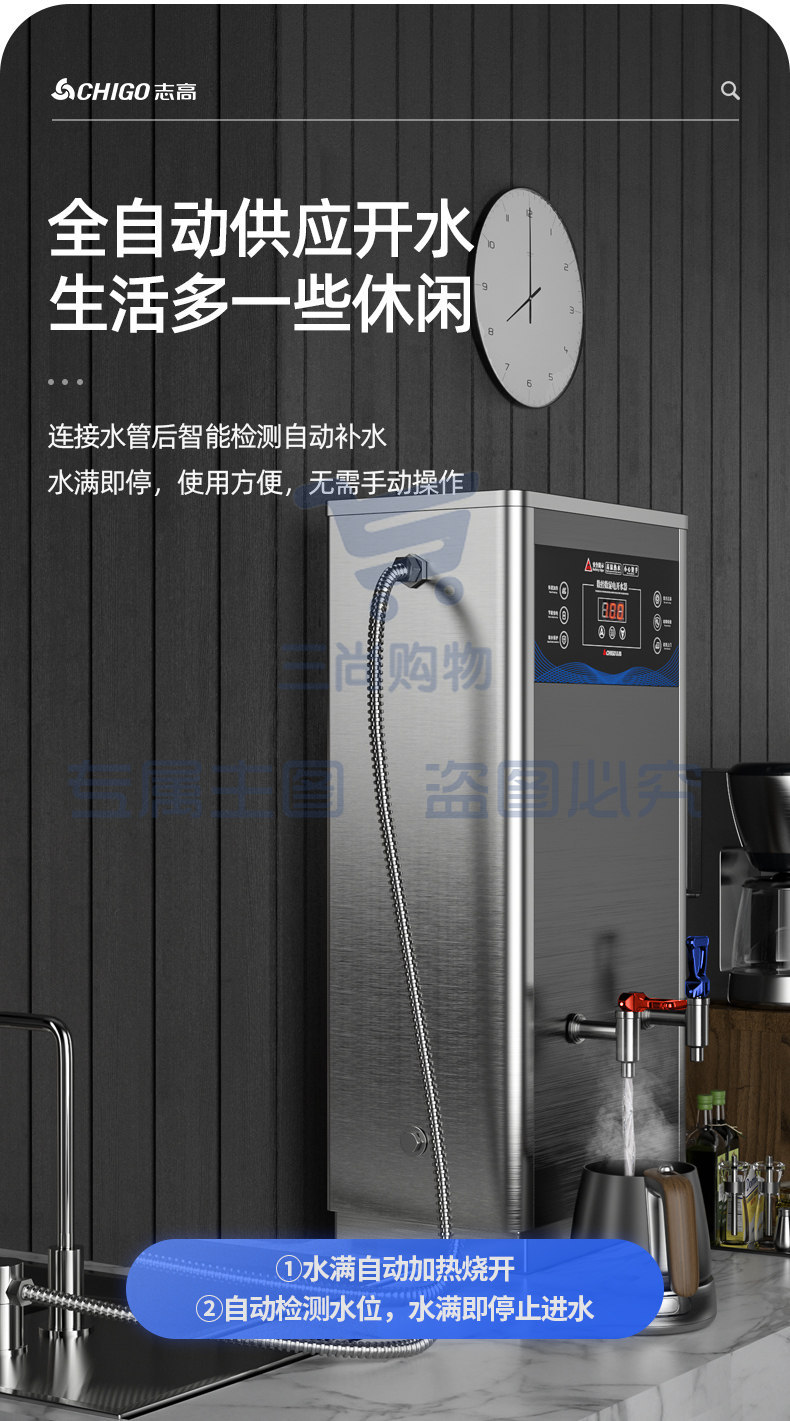 志高开水器热水器饮水机70L商用全自动电热常温/热水双出水三级过滤 学校医院办公楼适用 落地数控款