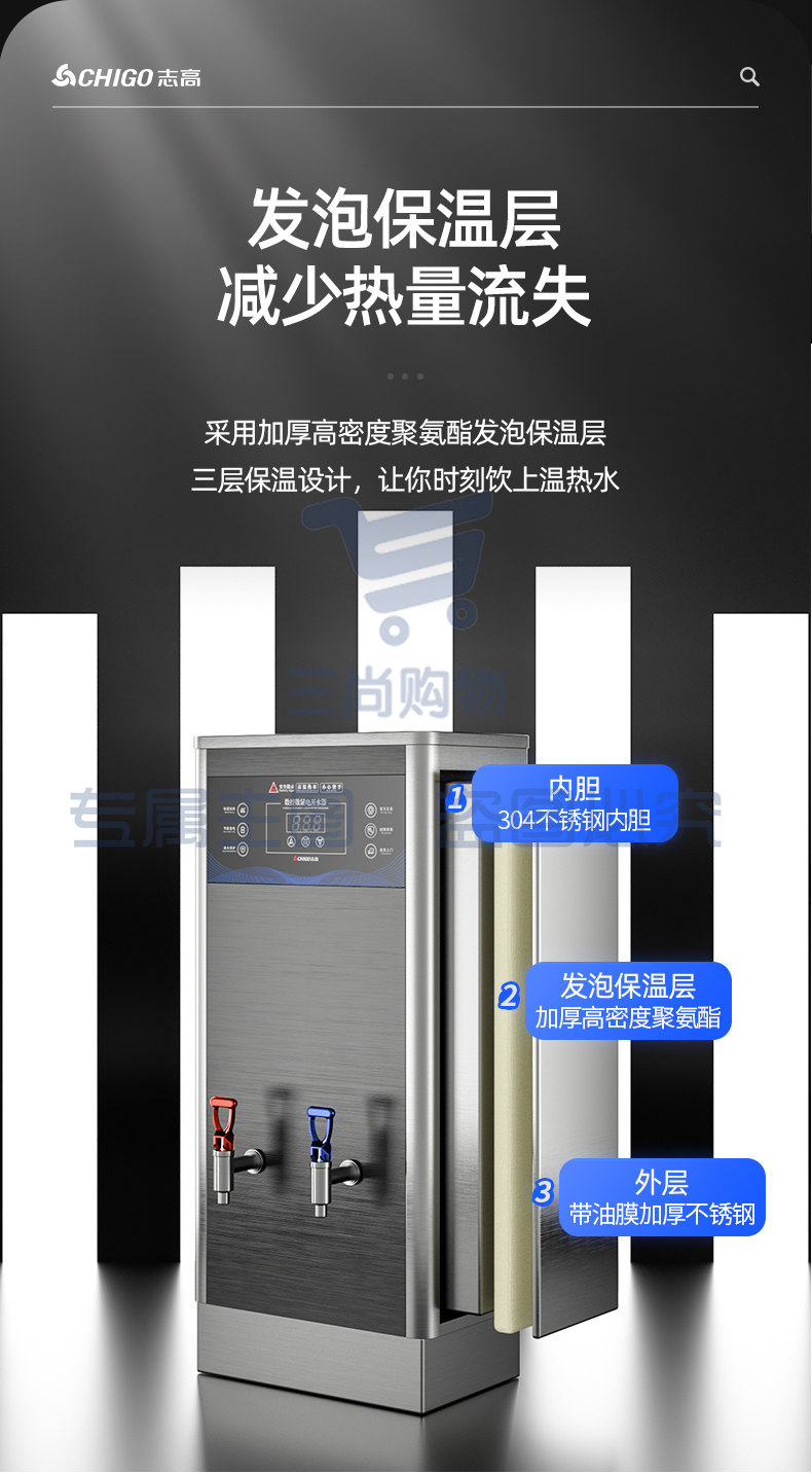 志高开水器热水器饮水机40L商用全自动电热常温/热水双出水三级过滤 学校医院办公楼适用落地式