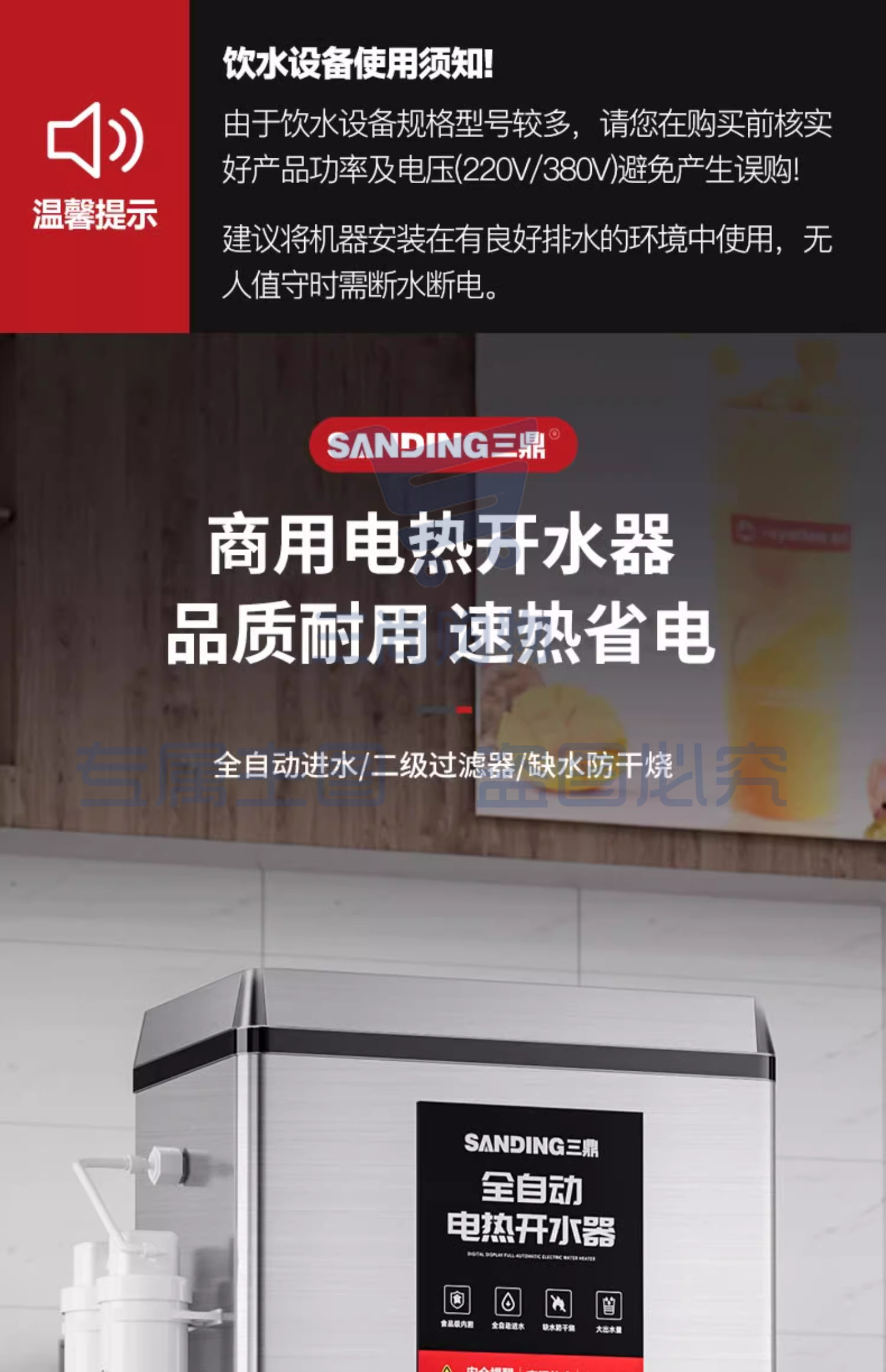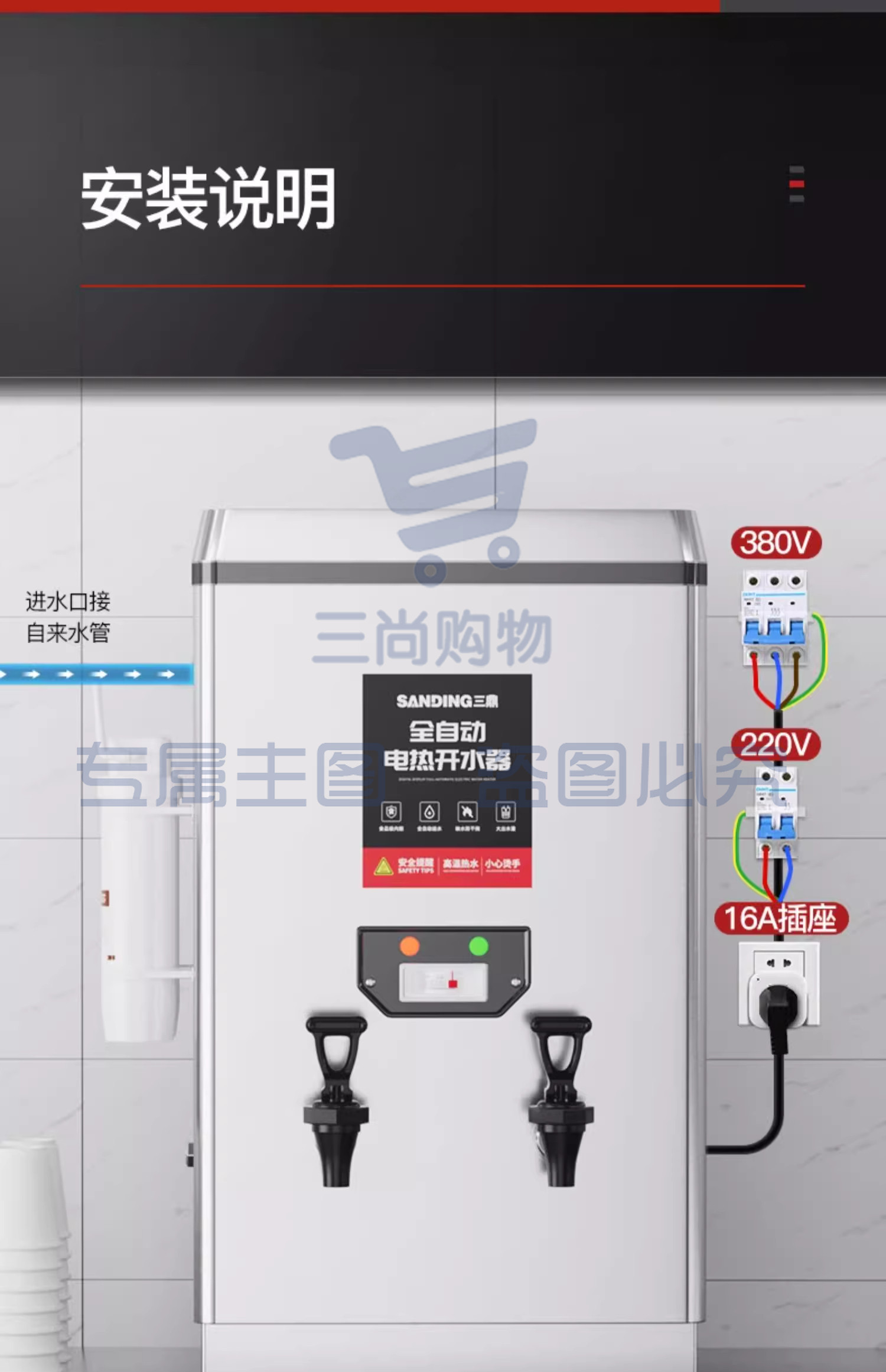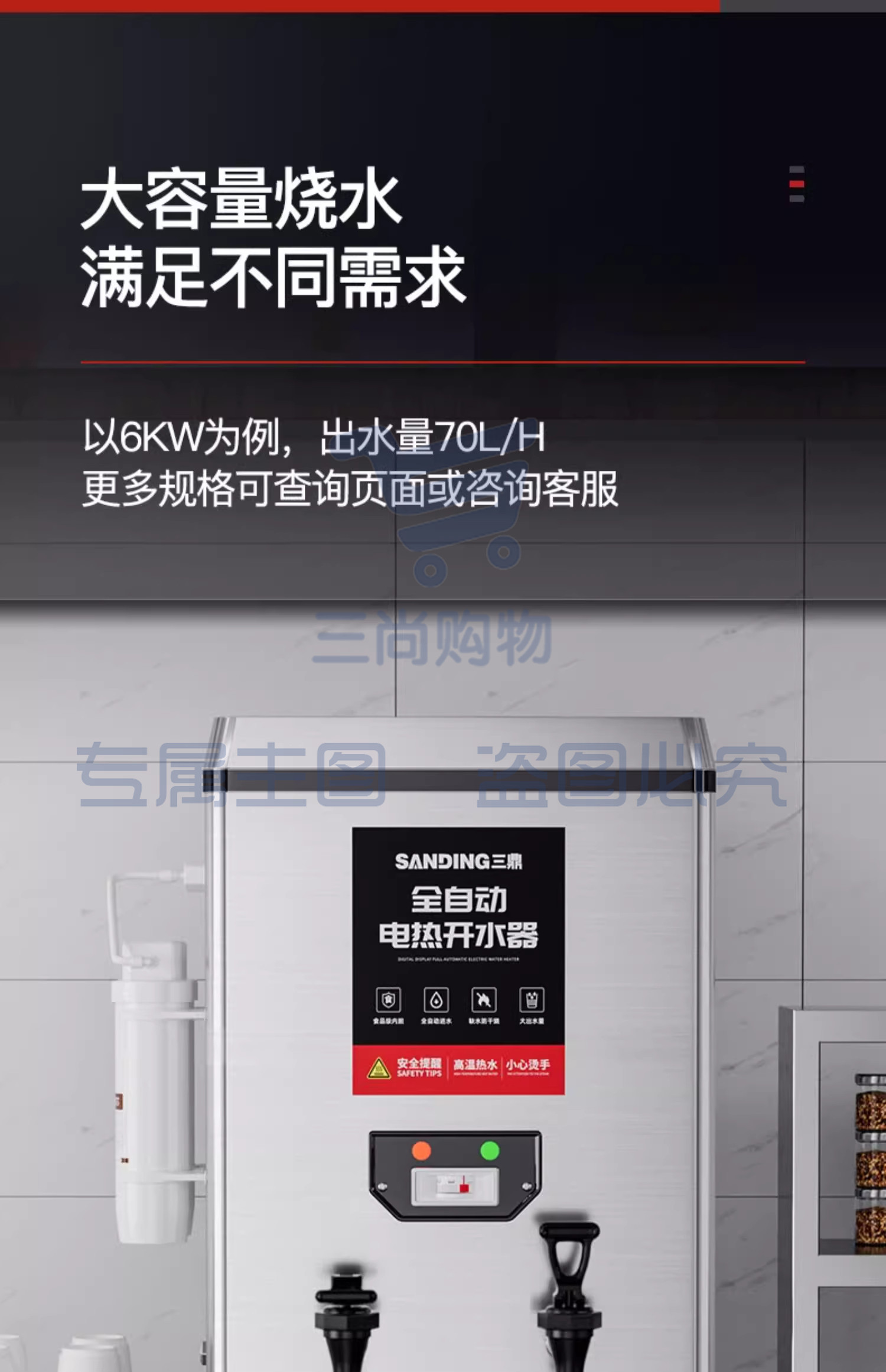 三鼎商用开器烧水器饮水机常温/开水 70L带底座落地式