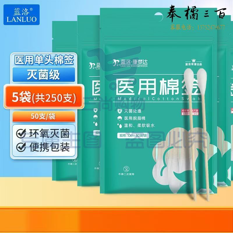 蓝洛 10cm 50支*5袋(250支)一次性使用无菌 单头竹棒 清洁棉花棒-CC5259