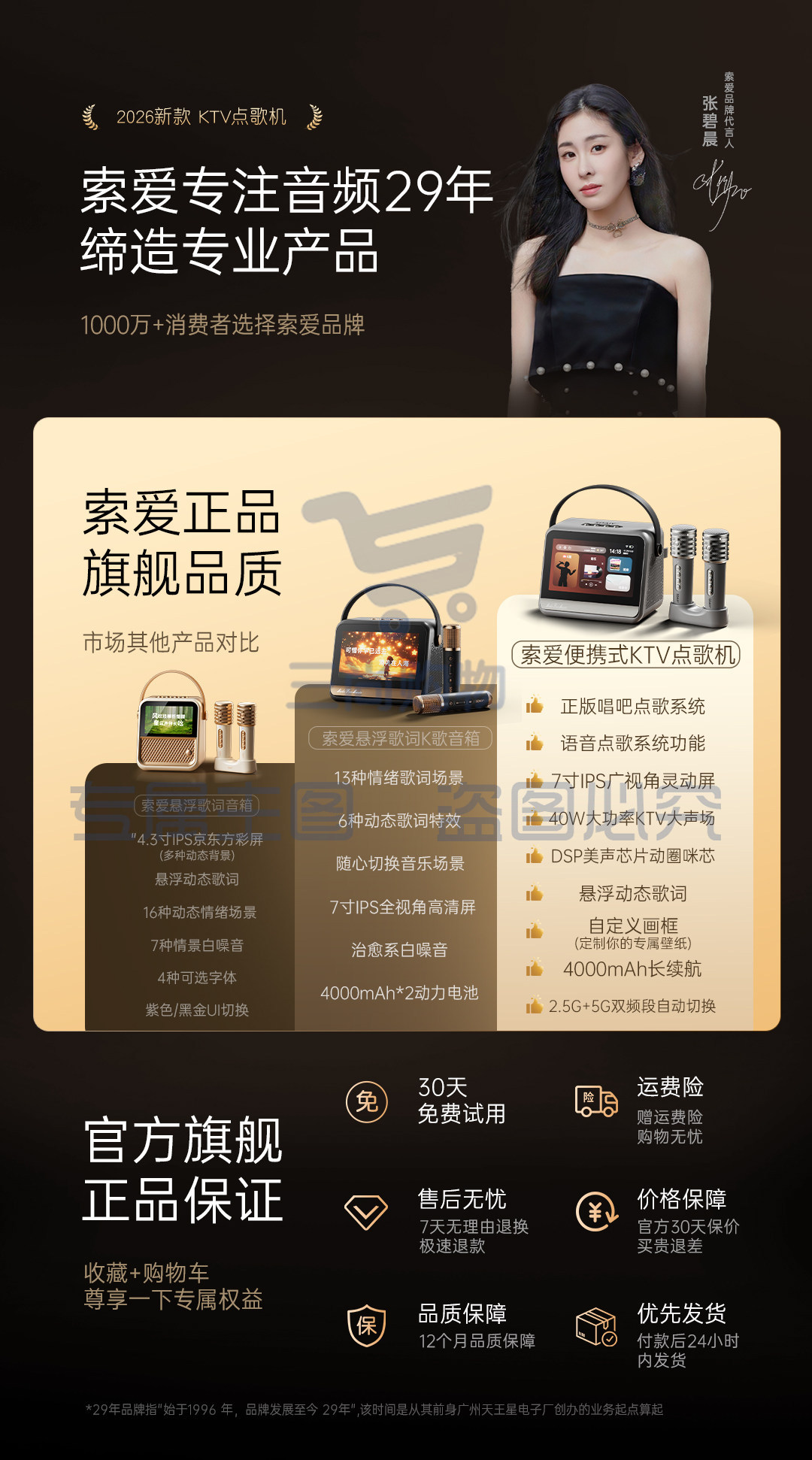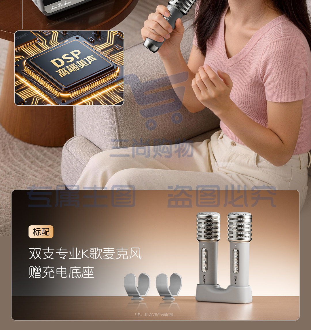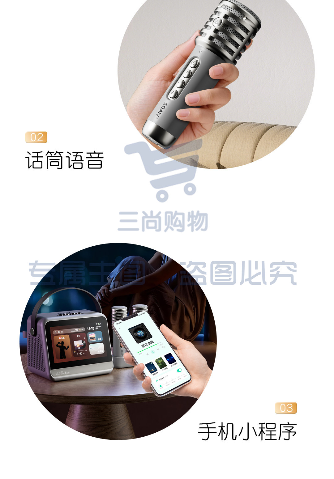 索爱V8家庭ktv音响点歌机麦克风一体话筒卡拉ok唱歌机智能k歌音箱