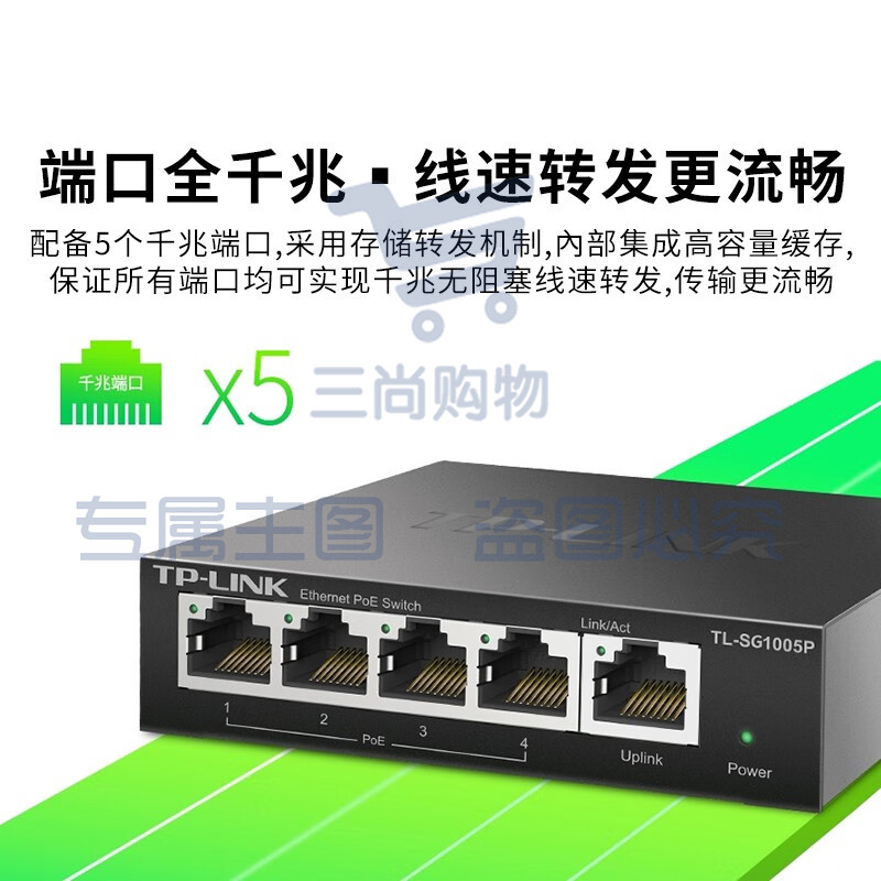 普联(TP-LINK)5口千兆PoE交换机 4口PoE非网管交换机 监控网络网线分线器 企业级交换器 分流器 TL-SG1005P