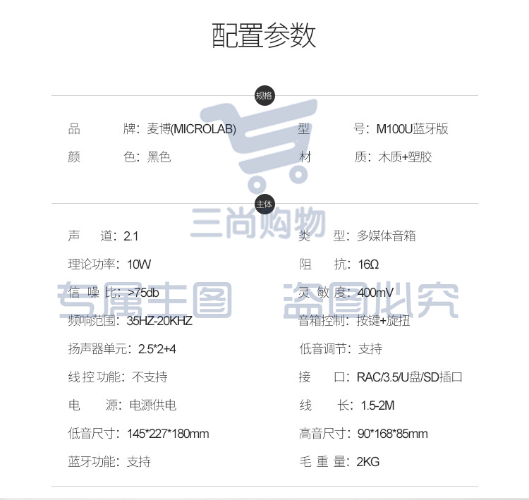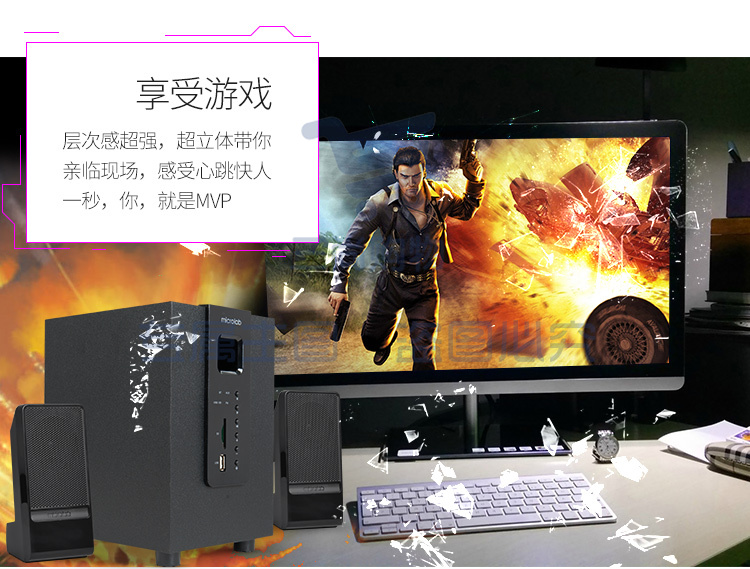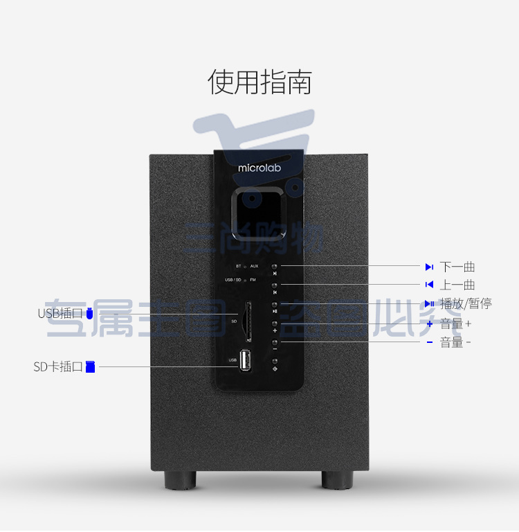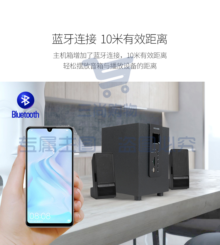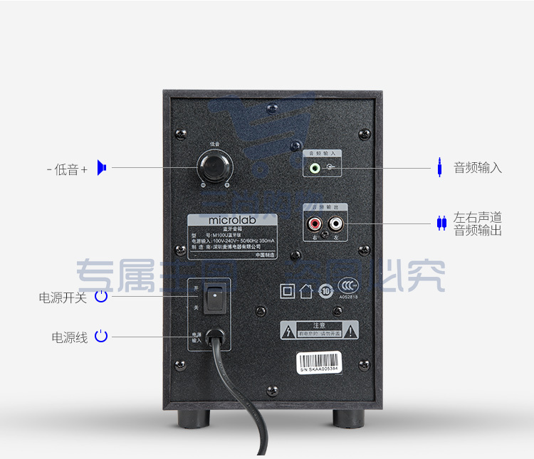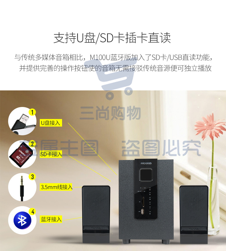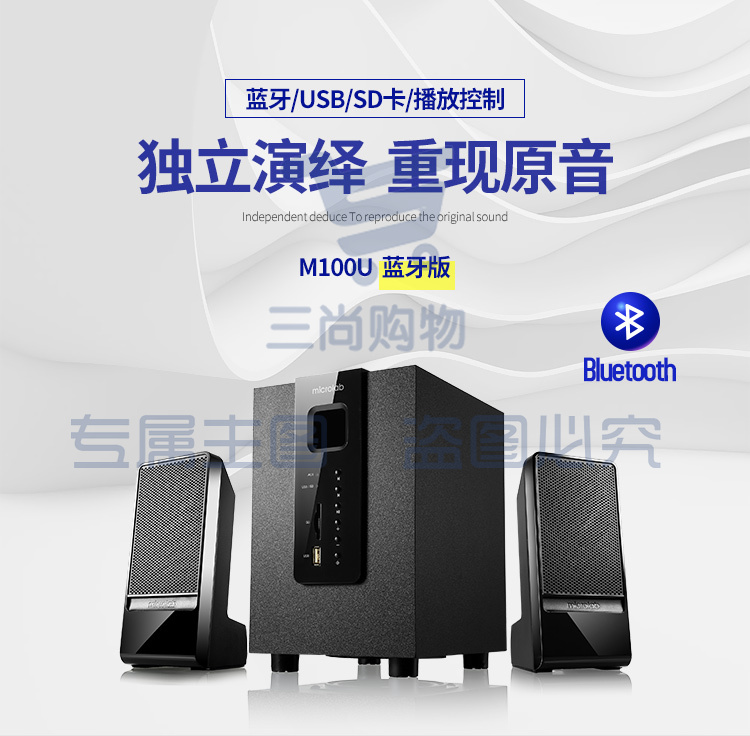 麦博 Microlab M100U蓝牙版支持插卡SD卡、U盘 2.1多媒体音箱 音响 蓝牙音箱 低音炮 电脑音响 黑色