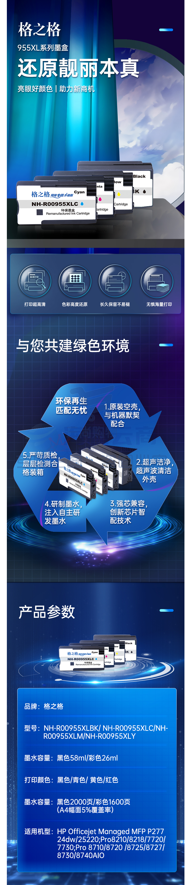 格之格 955XL黄色 适用惠普8720 8730 8710 P25220