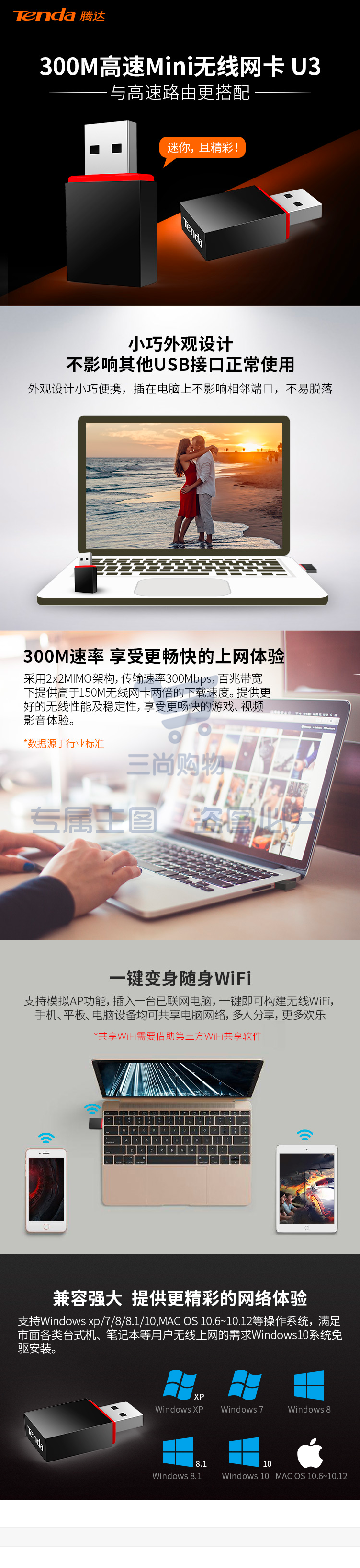 腾达(Tenda) USB无线网卡WIfi6无线台式通用 300M免驱大功率 USB网卡